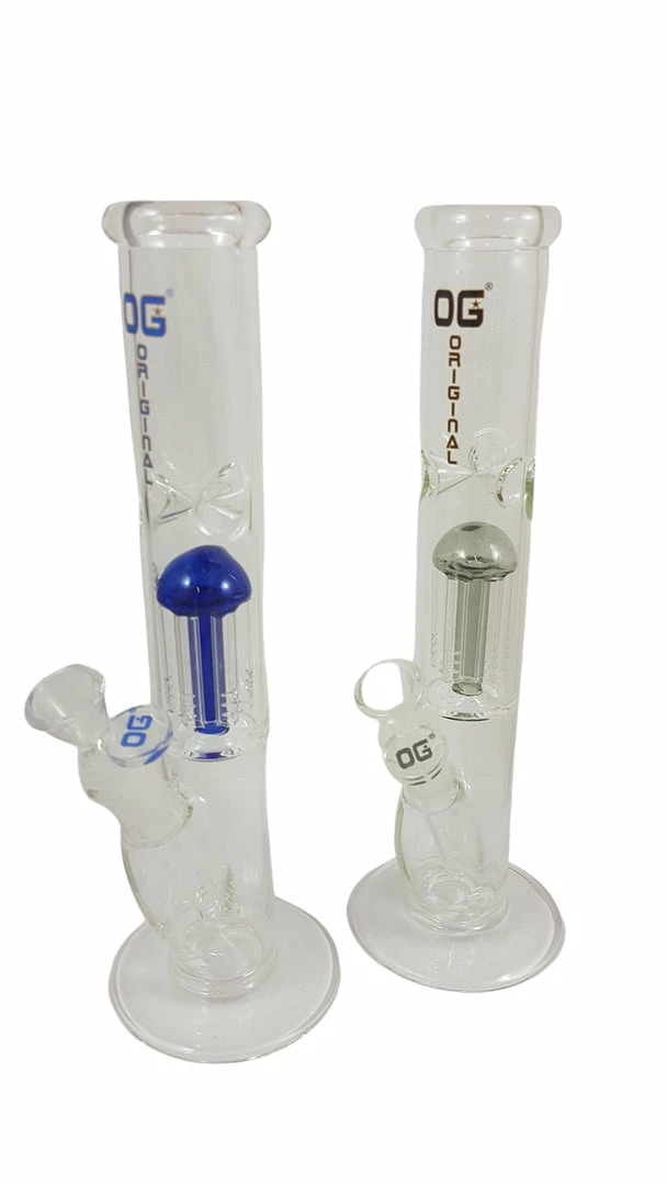 These 12″ tall straight tube bongs from OG Glass feature a simple tree perc for an extra smooth hit and are 7mm thick, making them durable and a great travel option.Â