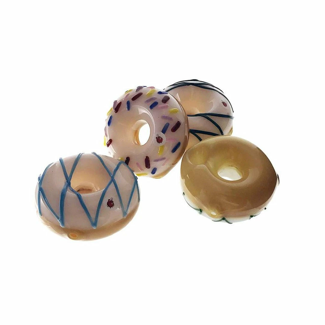 The Donut Pipe by Blowfish Glassworks is 3″ in diameter which makes nice a portable. This Chillum style pipe is designed to look like an actual doughnut, sprinkles included, so don’t mistake it for a real one as its made of durable borosilicate glass.