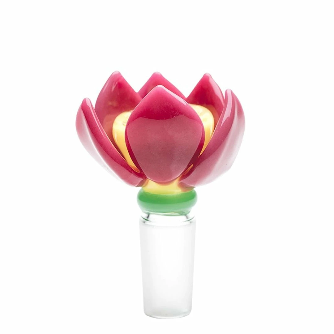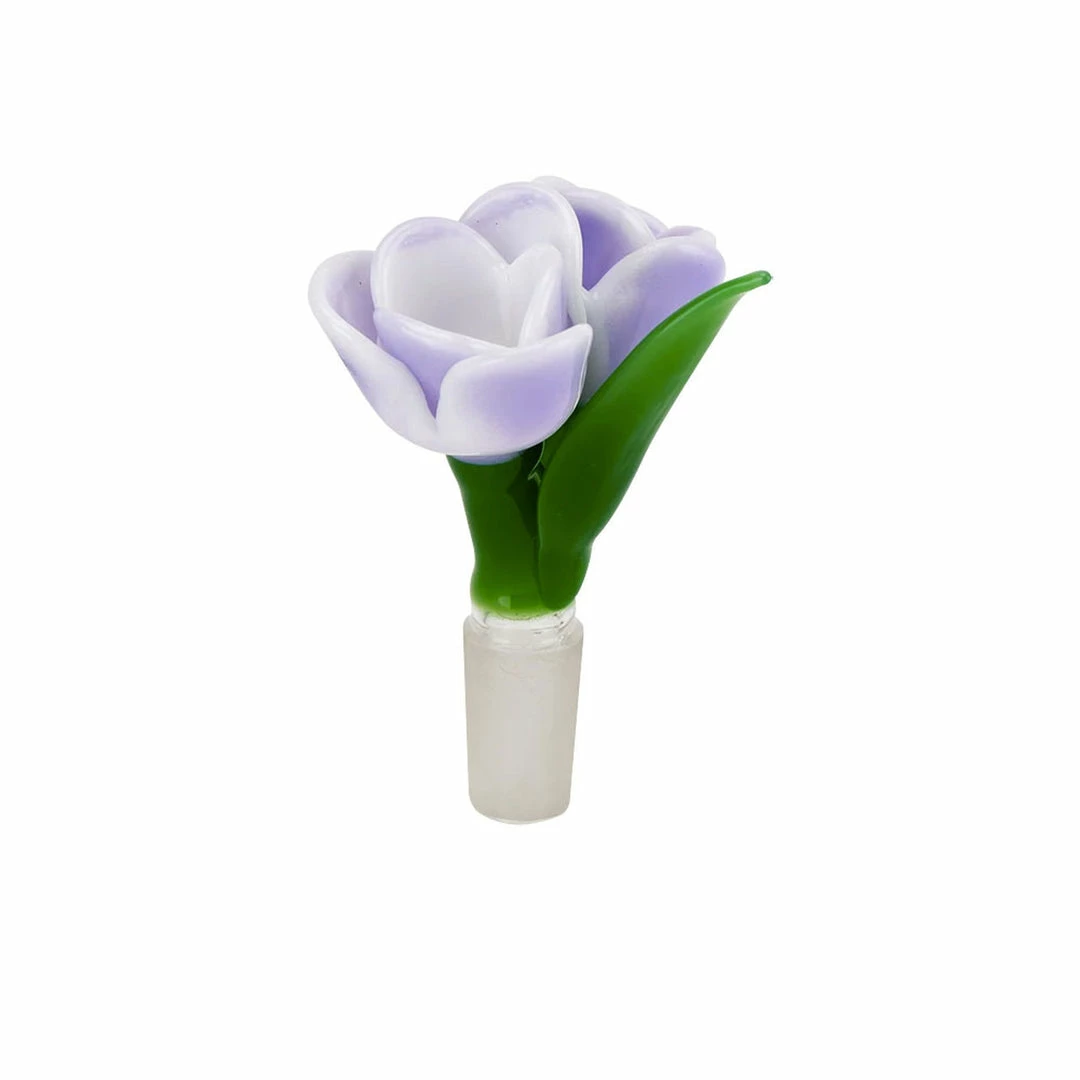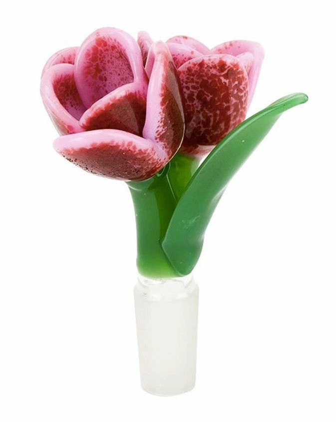 Double the fun with these beautiful, unique flower herb slide bowls by Empire Glassworks. Featuring a 14mm male slide joint, this intricately designed bowl will function with any 14mm female water pipe or oil rig. These herb slides features a unique dual-hole bowl design for a stupendous smoking experience to match the beauty of these lovely flowers.