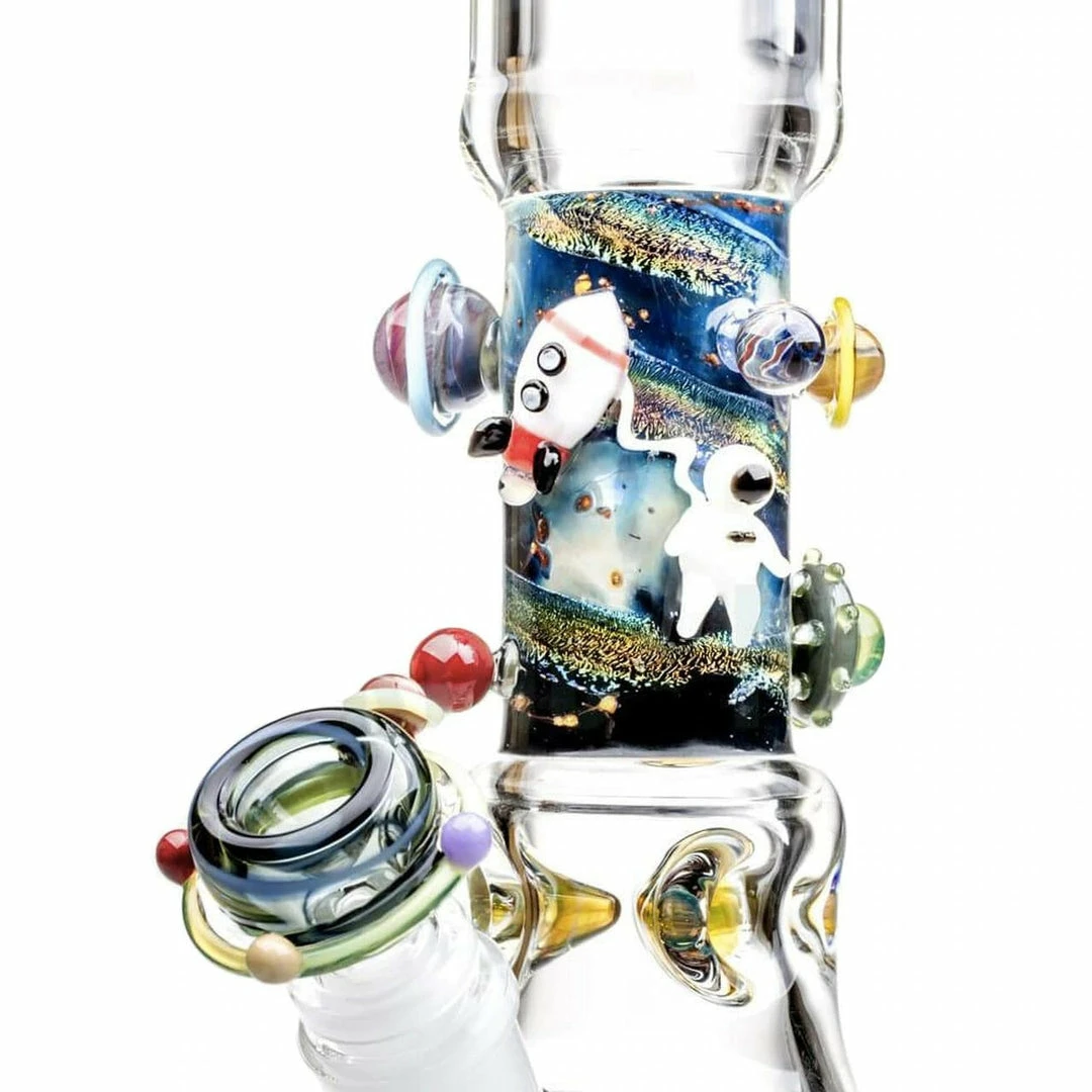 Outer Space: The Flagship Outer Space beaker water pipe from Empire Glassworks is your one way ticket to the cosmos. Standing 14″ tall, one rip from this glorious water pipe will leave witnesses thinking they came in contact with the milky way. The Outer Space water pipe comes with a 14mm herb bowl but can be turned into the ultimate dab station by adding a Banger and Carb Cap.