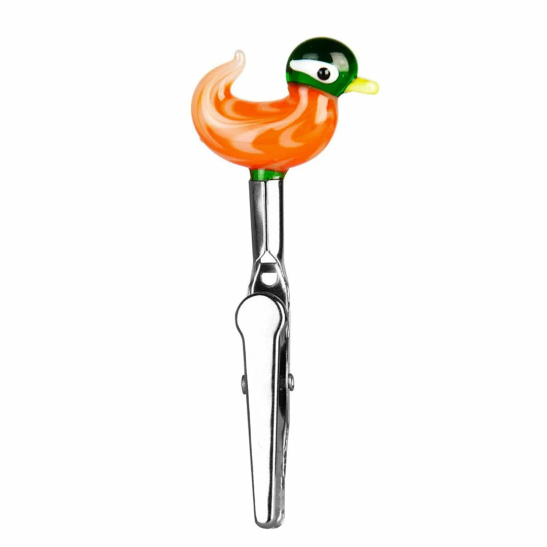 These small metal joint clips are perfect for holding your pre-rolled smokes during your smoke sesh. Each clip has a hand blown glass decoration on the end. Available in multiple fun and colourful decoration styles to suit all of your customers preferences. Measures approx. 3 inches long, colour and style may vary from images.