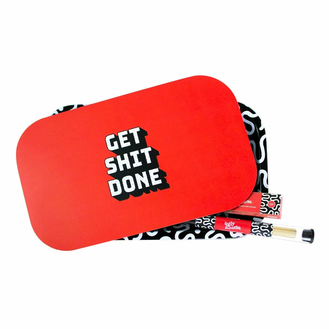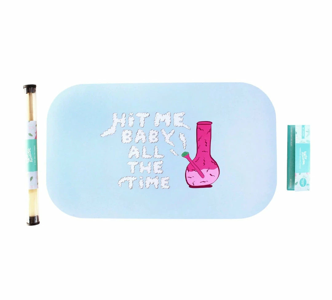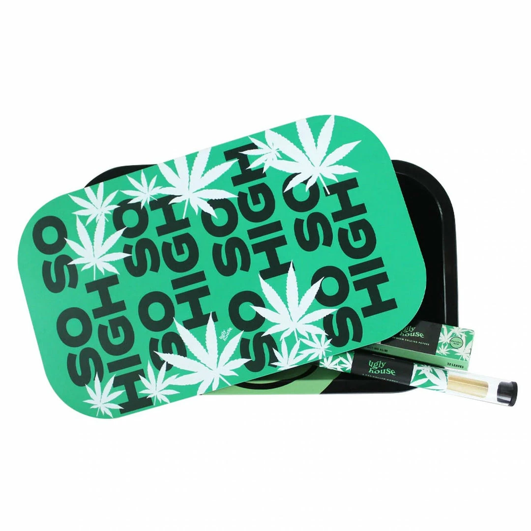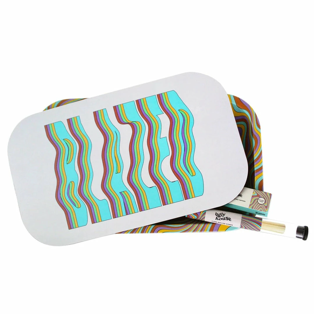 Ugly House rolling trays measure 10.6″ x 6.3″ and feature cheering colourful design that comes with a strong magnetic lid helps keep everything fresh, organized and clean. The bundle comes with 3 unbleached hemp pre-rolled cones and a pack of unbleached 1¼” hemp rolling papers. The magnetic lid cover only covers the top of the tray.