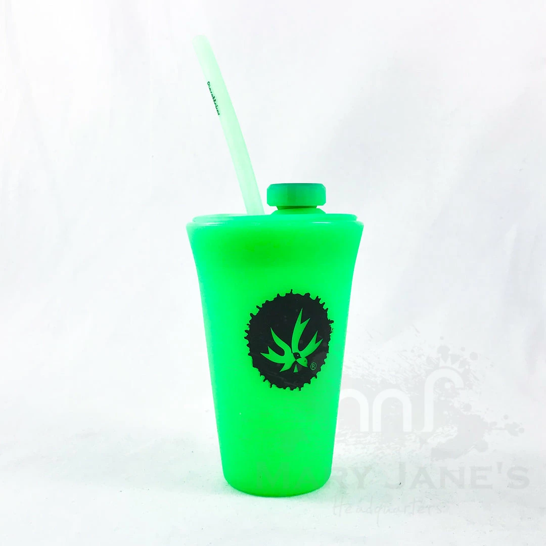 Piece maker has collaborated with SiliPint to bring us the Kommuter silicone drink cup and topper. Featuring a 16oz. SiliPint cup, lid, hex tech downstem and bowl, and a detachable mouthpiece. The removable downstem provides more bubbles for a smoother smoking experience. The detachable lid also fits other fast food and solo cups so you can convert any compatible cup into a makeshift water pipe! Use the SiliPint as a cup on it’s own or attach the Kommuter lid to transform it into an unbreakable water pipe.