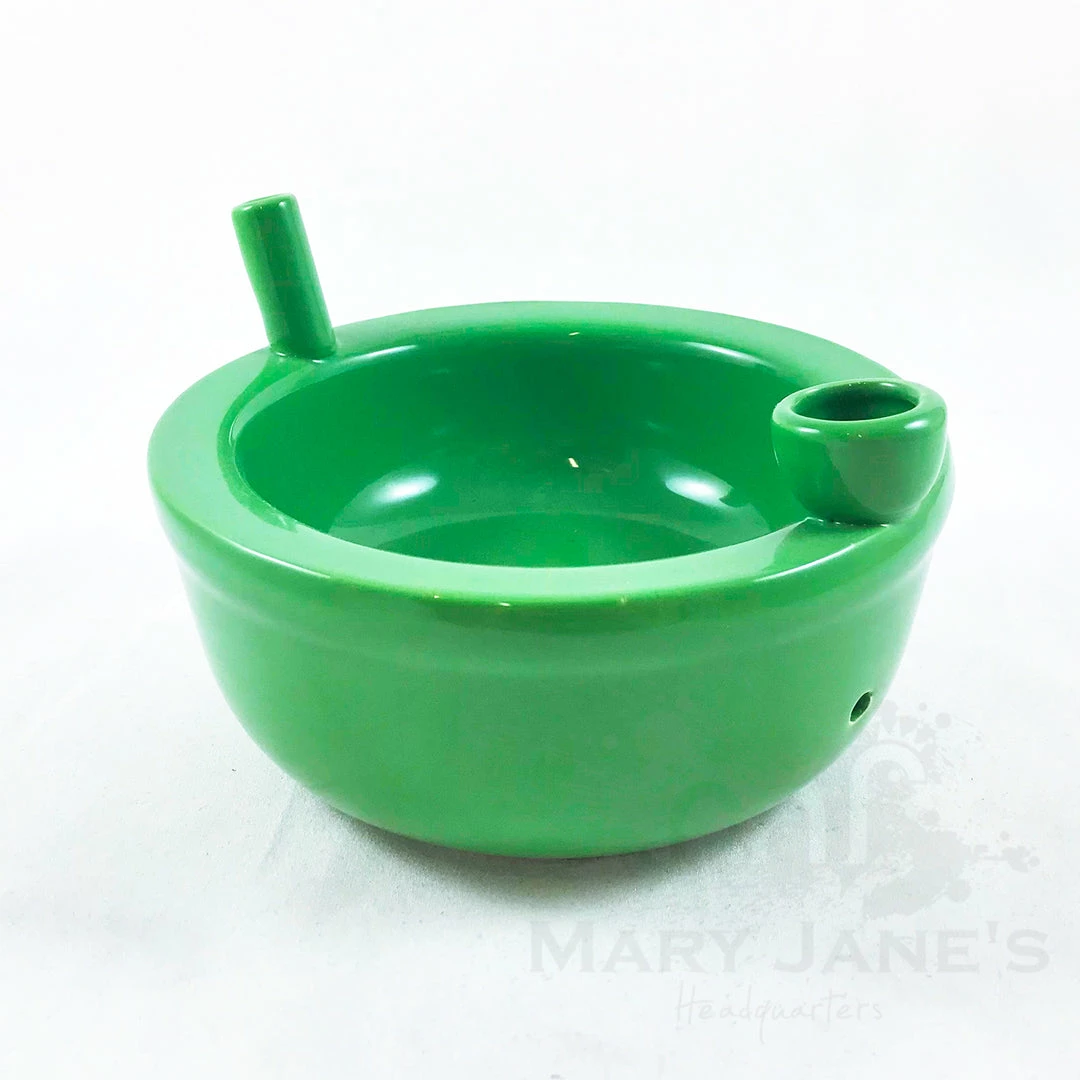 Perk up your morning routine with this fun, ceramic novelty cereal bowl that features an integrated pipe where you can pack your favorite legal herb and light up. The smoke filters up the hollow inner section of the bowl to the other side’s mouthpiece on the top. Sit back, relax and enjoy your snack and smoke!