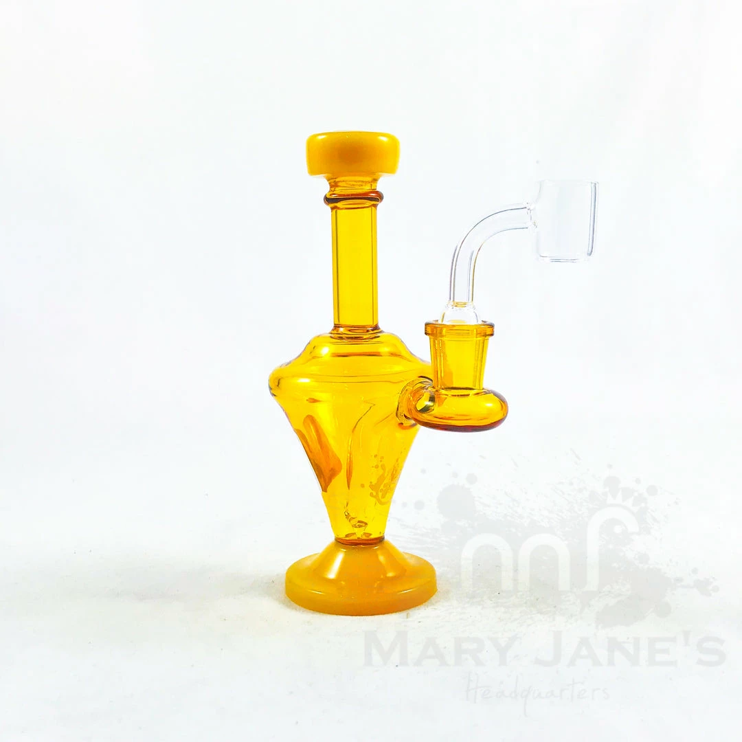 The Pulsar Glass Finial dab rig stands 6.5″ and features a finial shape, colourful glass accents, and an attached downstem diffuser. These dab rigs come ready to use with a 14mm male quartz banger, but can be the ultimate dabbing setup by adding a carb cap and dabber tool.