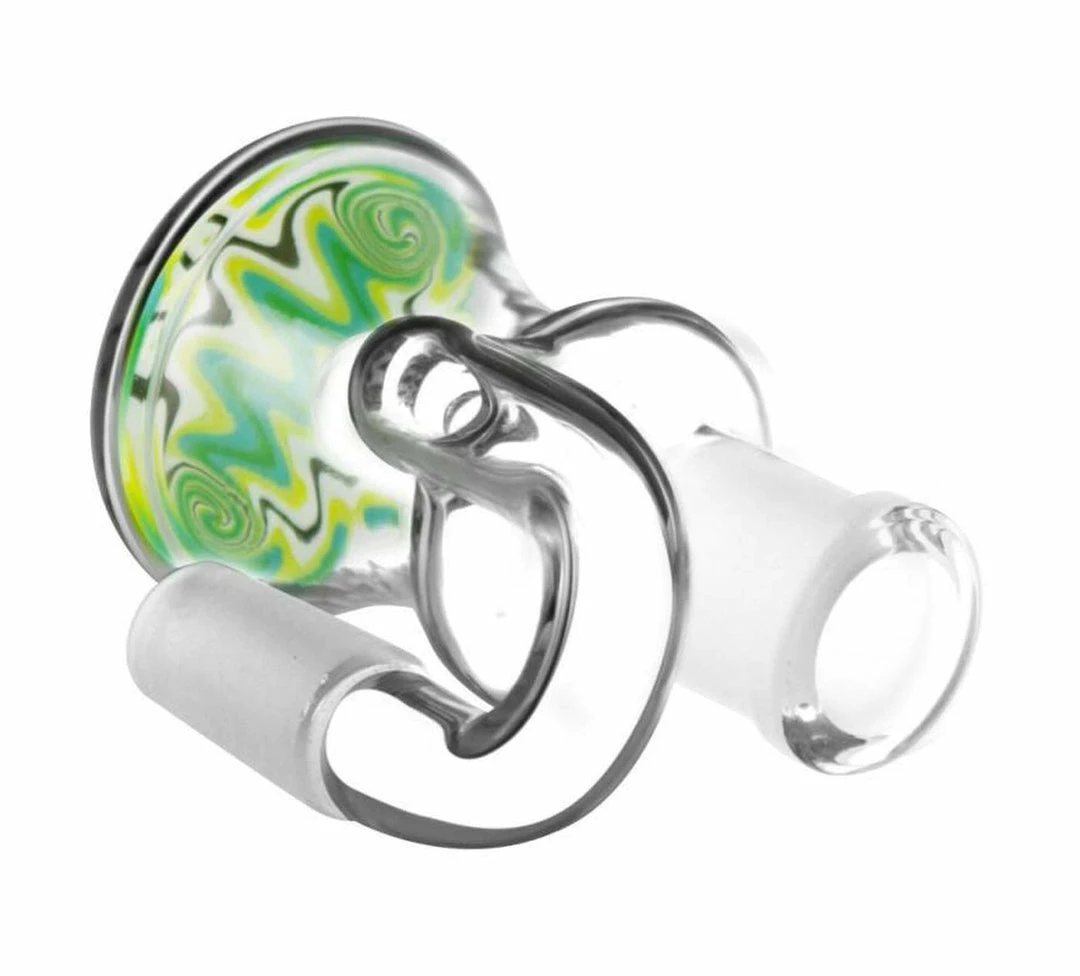 This Pulsar Ash Catcher features a worked colorful boro glass bottom, frosted joints, and a permanent Pulsar logo. Catches ash before it gets in the water chamber.