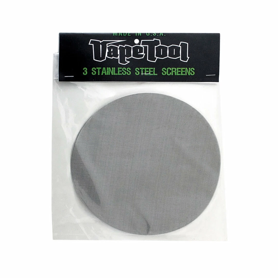 VapeTool stainless steel screens for solvent extraction using VapeTool glass extraction tubes are made of stainless steel in the USA. These 50 micron screens have a 7″ diameter and come with 3 screens per package.