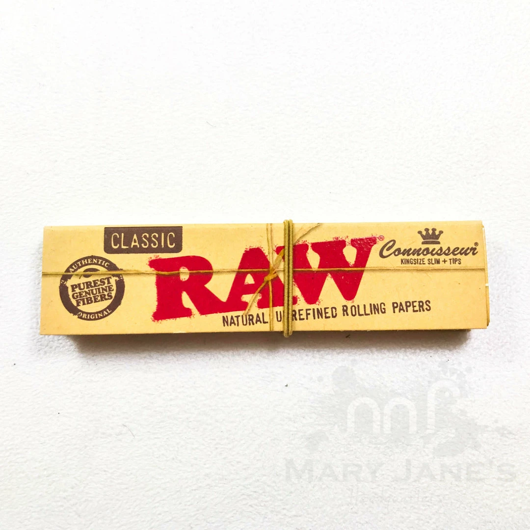 RAW Classic rolling papers are a pure, less processed rolling paper unlike anything that you have ever seen or smoked. It contains a hybrid blend of unbleached fibers making the paper a translucent natural light brown color. Raw rolling papers are watermarked with a patented CrissCross watermark. This special watermark helps prevent runs and maintain a smooth even-burn.