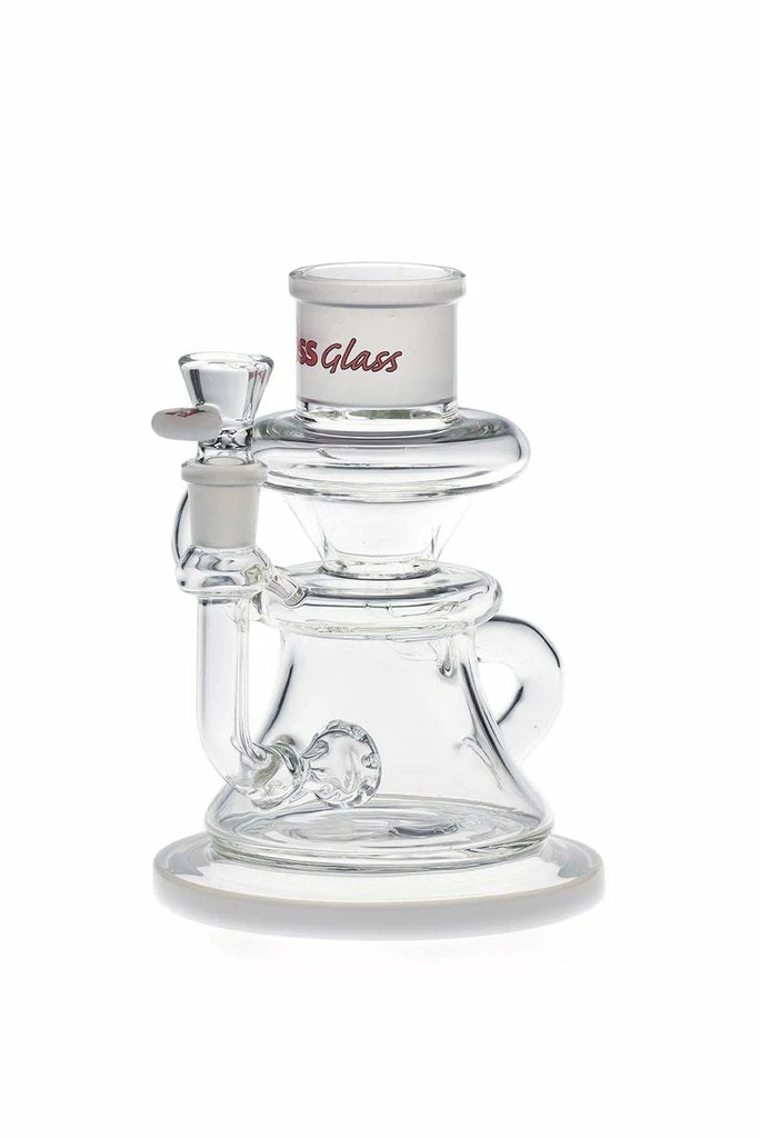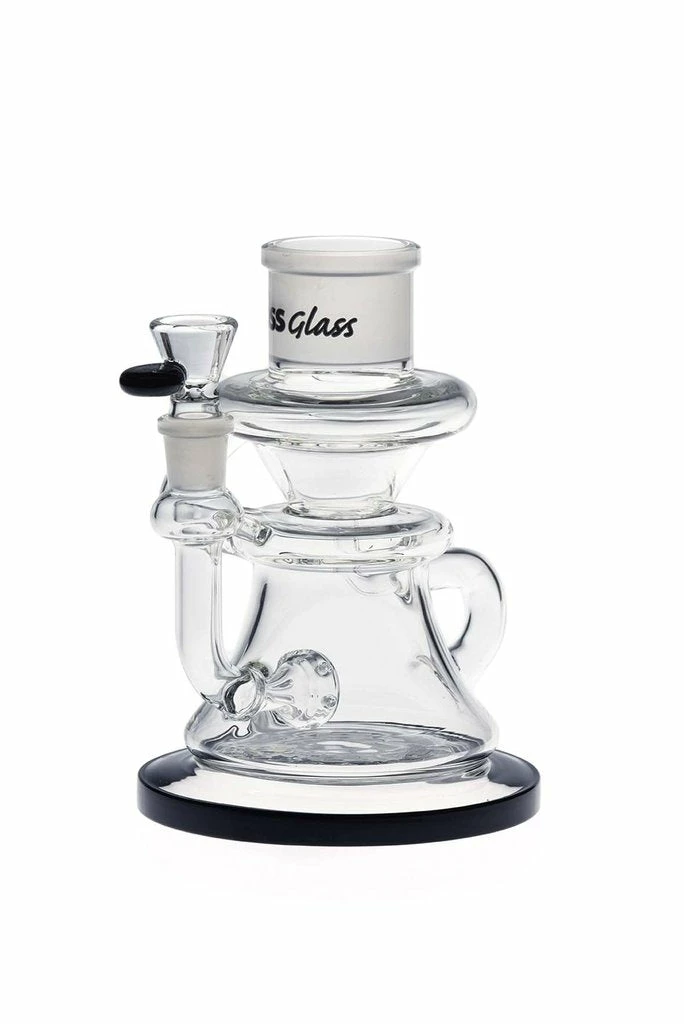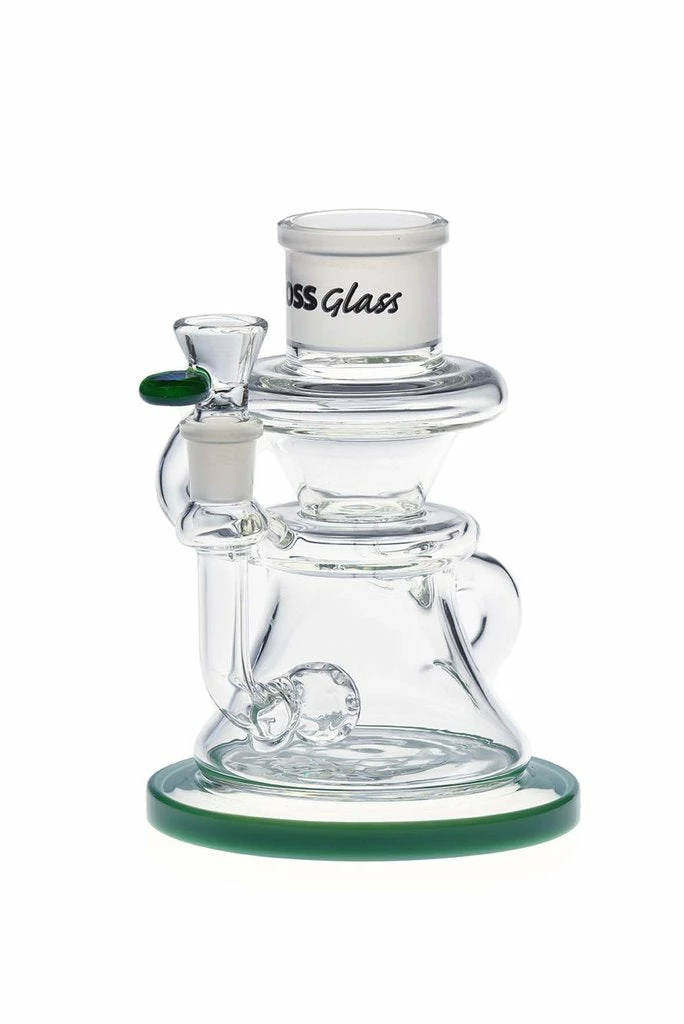 The Twisted Recycler Base is our first Build-a-Bong® recycler. Attach this with other Hoss Glass® parts and create your own cool setup. The base recycles water up through the tube on the side, and it runs back down to the base through the center, while smoke percolates up into the top tube. This makes for amazingly smooth hits.