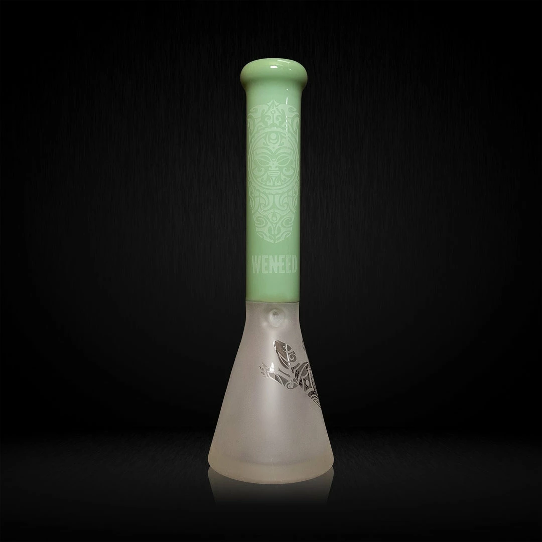 - Sun God and WENEED logo design masterfully engraved on fully opaque coloured borosilicate glass and clear frosted body with transparent gecko design