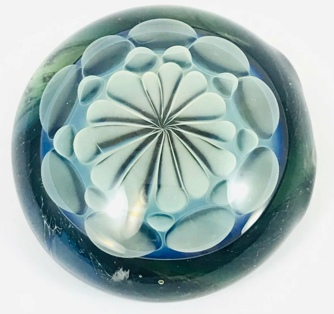 This pendant was made locally by none other than Hippo Glass and features a whole lot of silver and gold fumed right into the glass to give it a mesmerising shine, unique at every angle the light hits it. Great piece to add to any connosieurs collection!