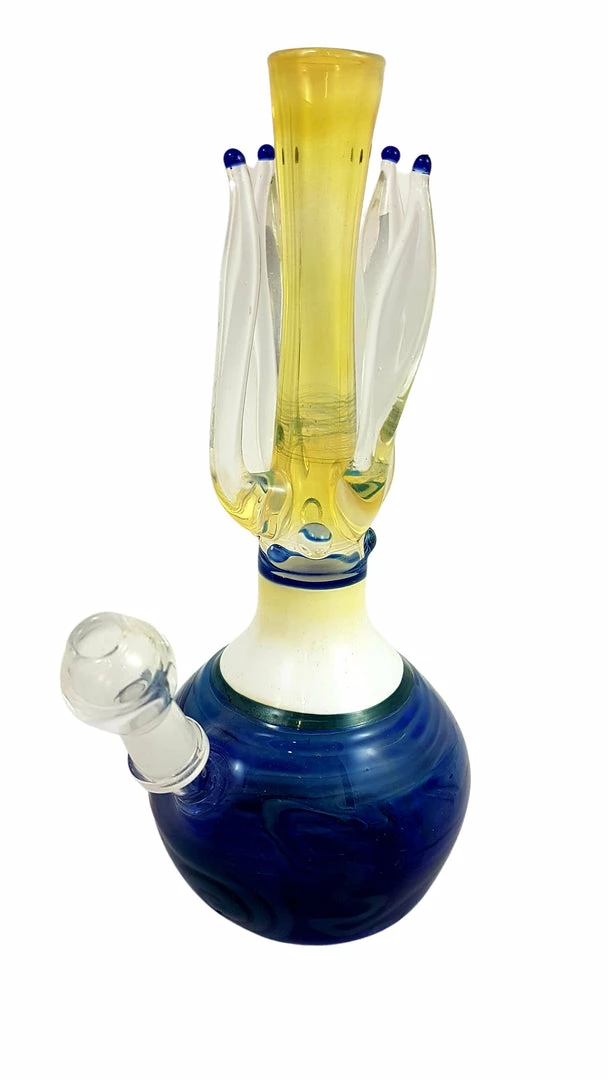 Space out with this futuristic looking, locally made, specialty piece featuring gold and silver fumed into the glass that will change colours as the glass gets dirty from usage, but will resort to the original colours once cleaned.