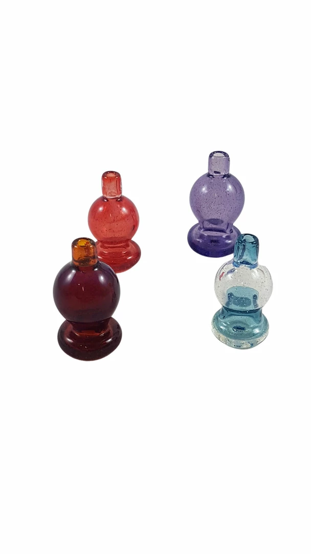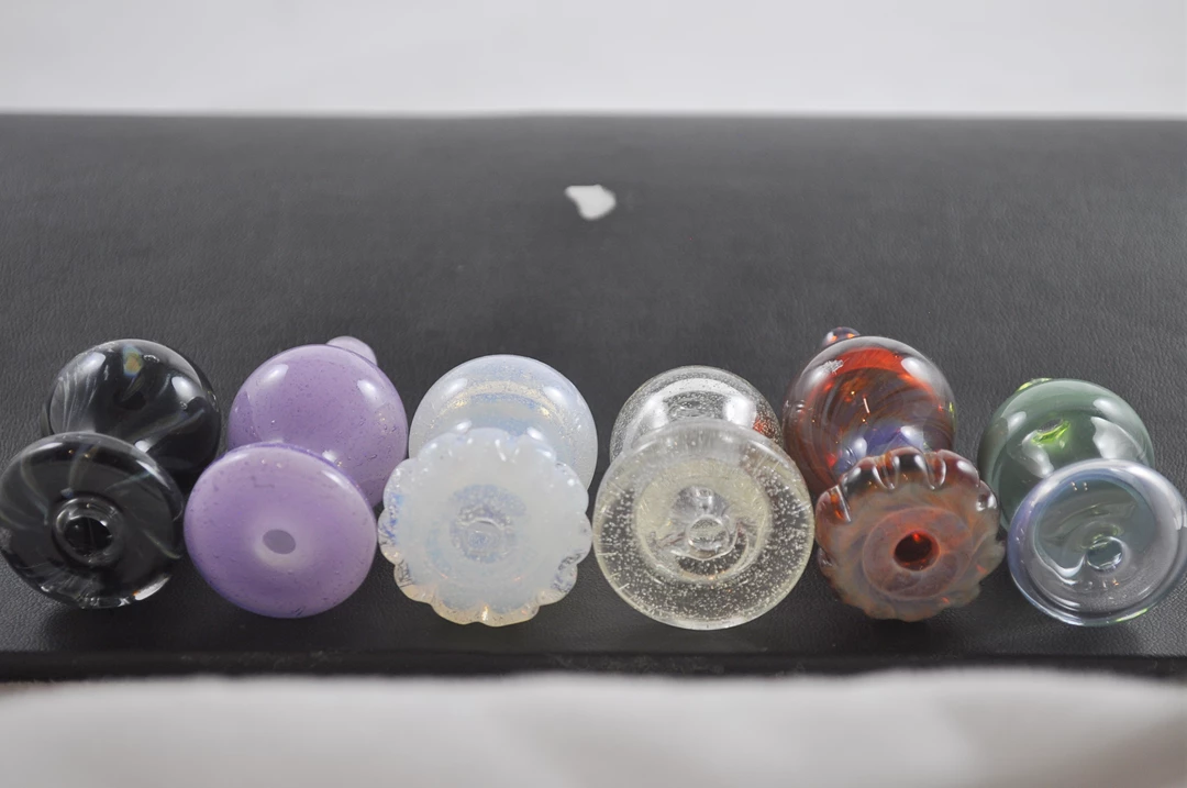 We have a wide variety of his glass art including clear and heady pipes, dabsticks, flat top and bubble carb caps, and even a few heady blunt tips!