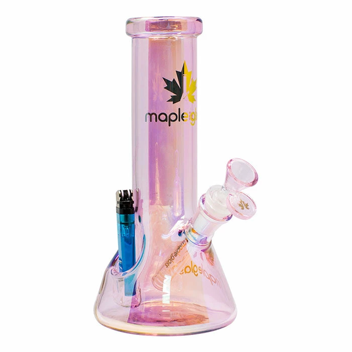 These Fire Starter Bongs have a 14mm joint size and feature a fire starter pocket to carry a lighter. It also comes with a beautiful bowl and stem with the Maple Glass logo.