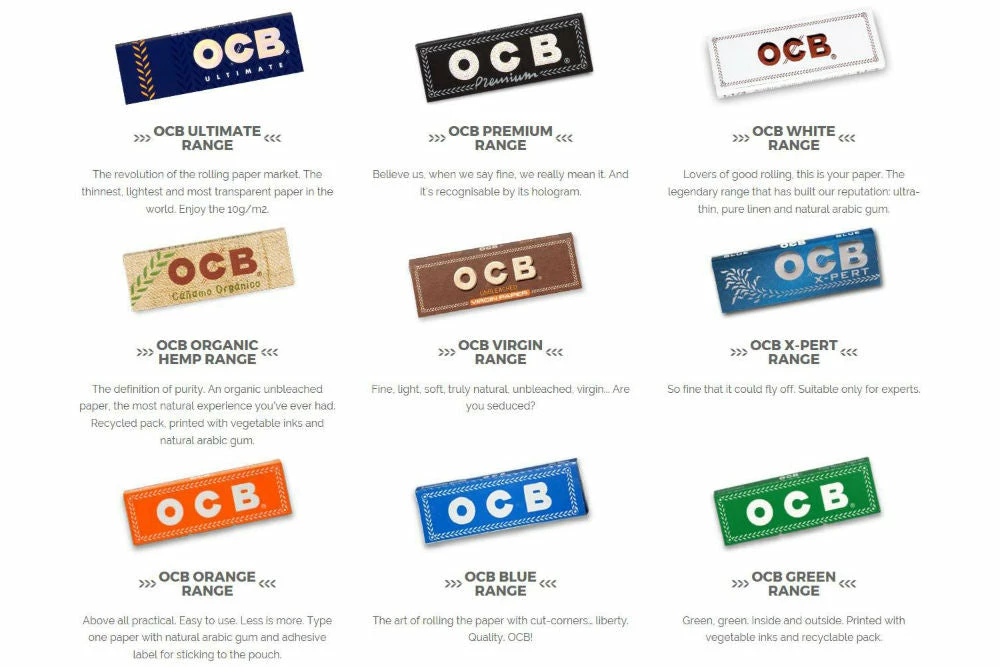 A Variety of premium OCB papers, from Organic Hemp to the Ultimate.