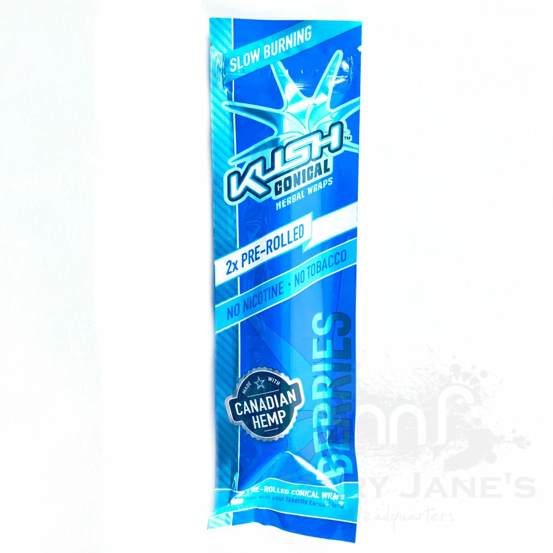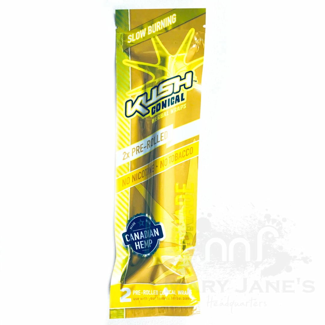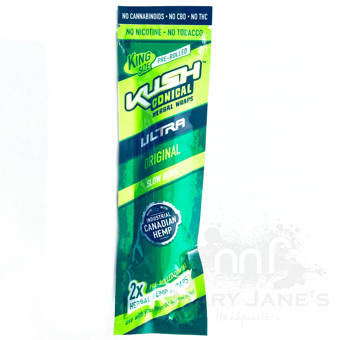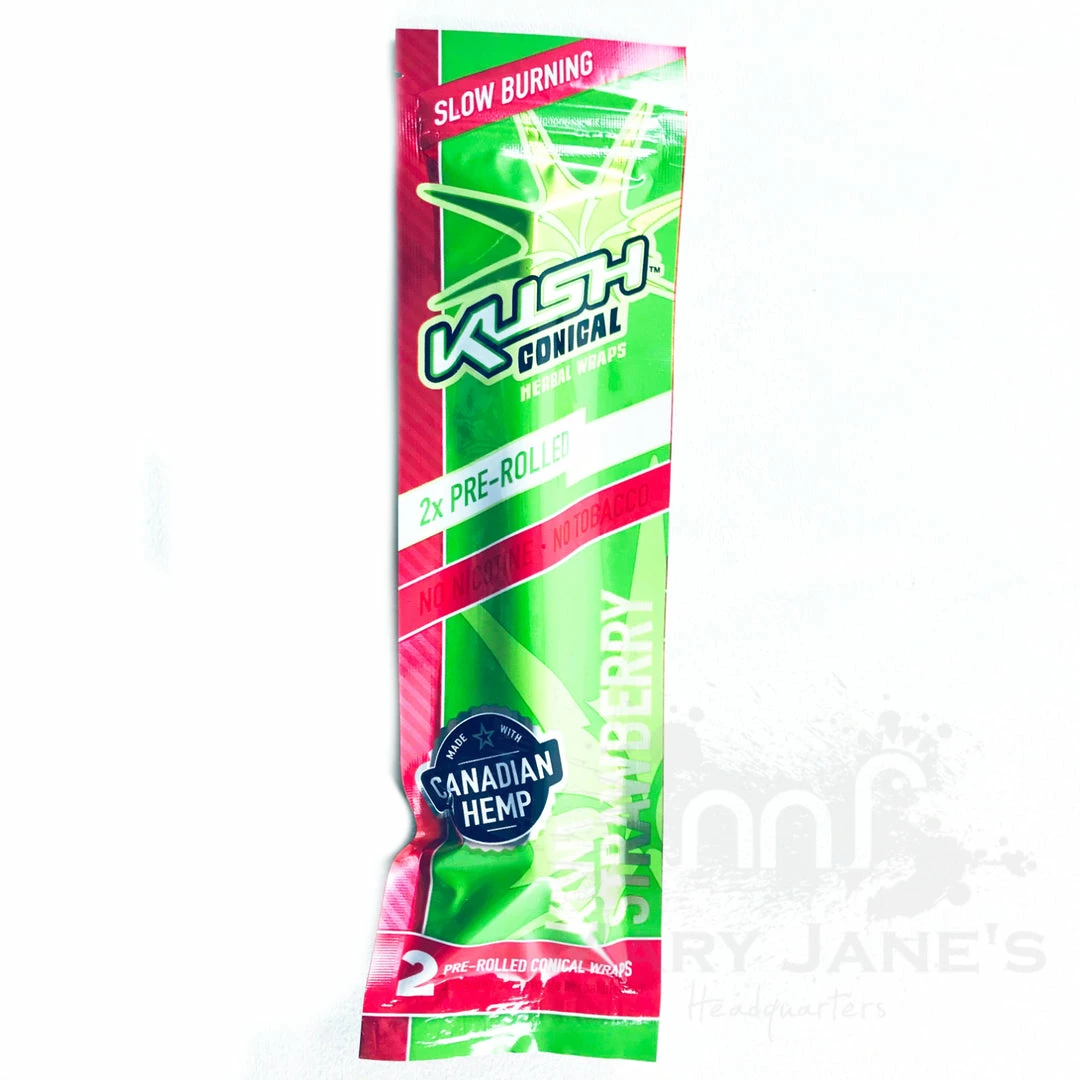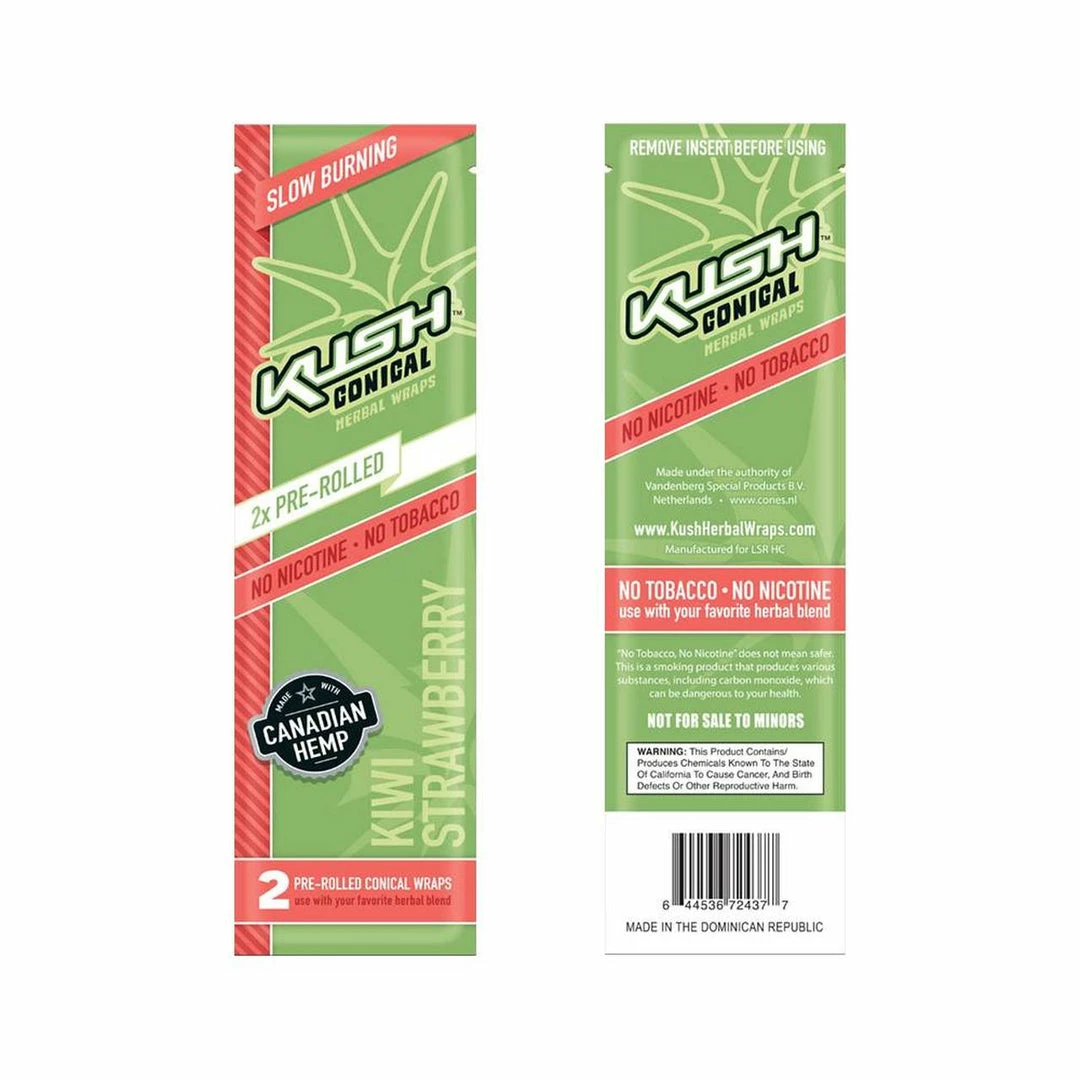 Kush Herbal Hemp Wraps comes in a pack of 2 wraps and are made with 100% Canadian Hemp and are nicotine and tobacco free.