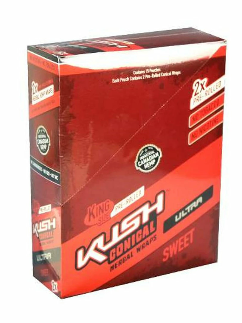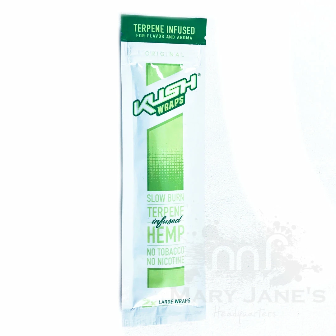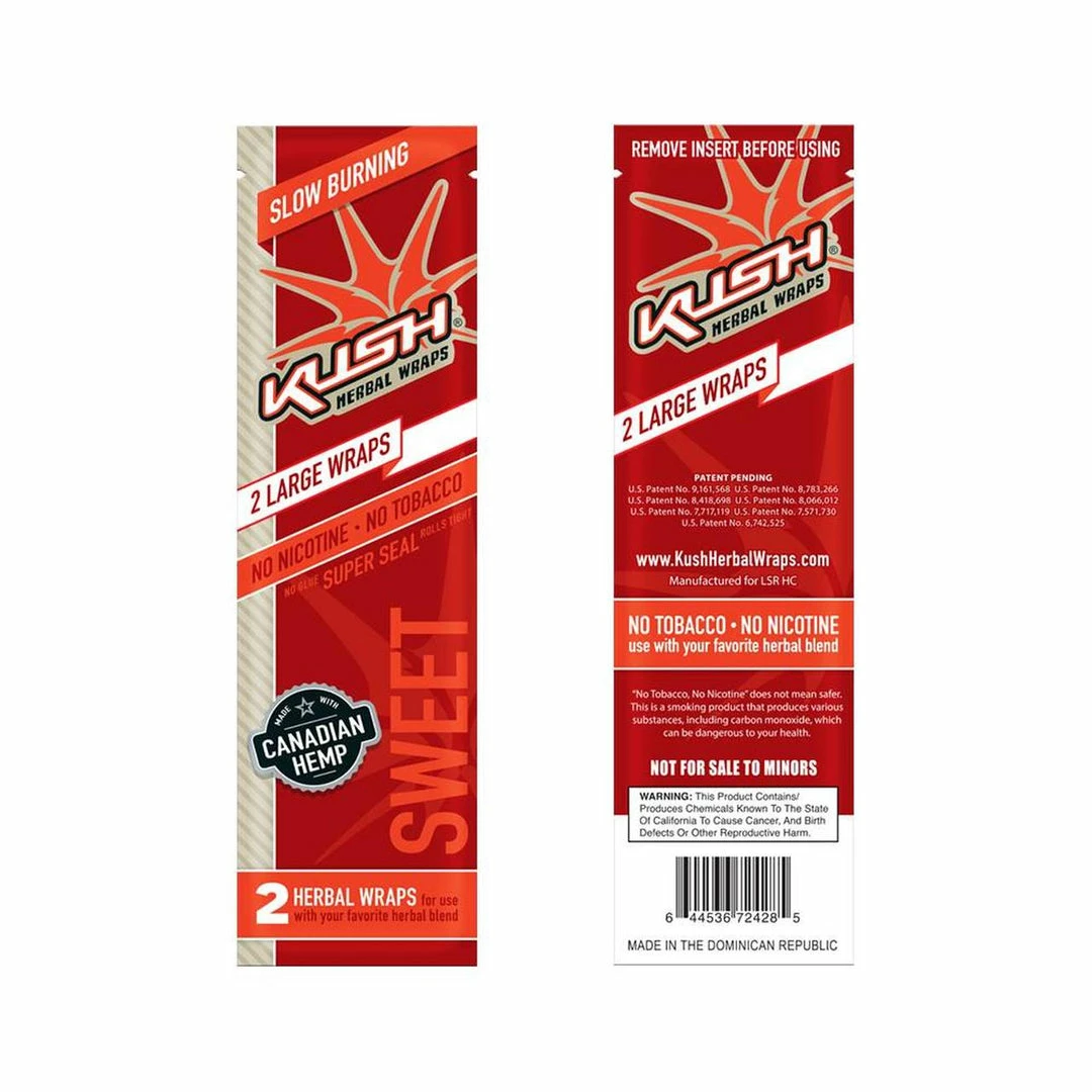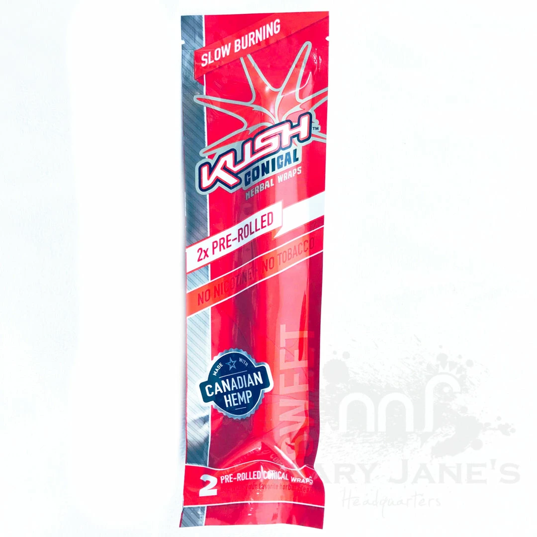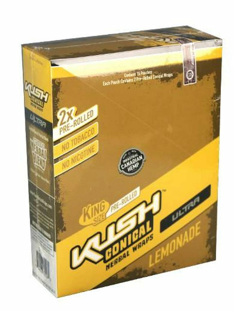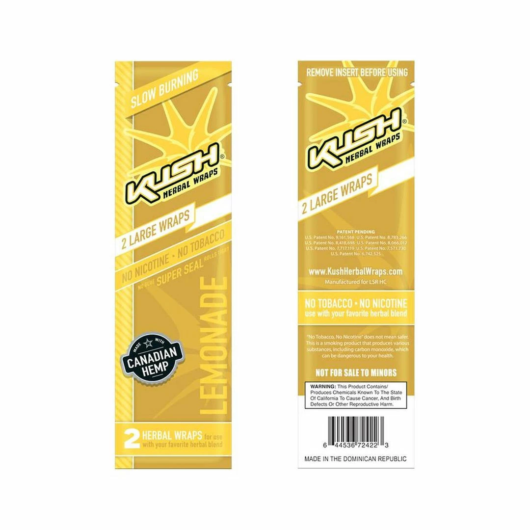 Kush Herbal Hemp Wraps comes in a pack of 2 wraps and are made with 100% Canadian Hemp and are nicotine and tobacco free.