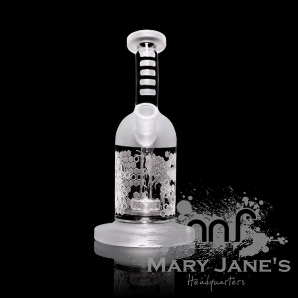 This bee hive dab rig made by Milkyway Glass has a sleek, stylish look to it that will make it a center piece for sure! Not only is it super fly, but it’s also 9mm thick! All Milkyway Glass designs are etched in and frosted so they will never wash off!Â