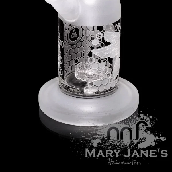 A classic 420 icon, this bubbler takes the humble bee to a whole new level… This detailed design depicts the hive structure in full glory around the main chamber. Contains a showerhead perc. Please note, the main stem is now a 90° angle, so it will vary a little from the picture.
