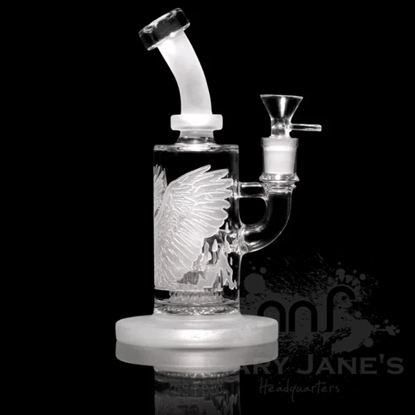 Milkyway Glass sandblasted dab rig featuring a beautiful phoenix as well as a 14mm herb bowl.Â