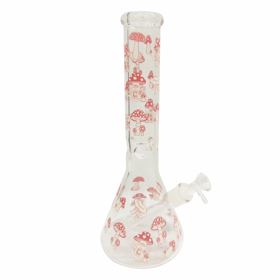 These 14″ Mushroom Decal Beaker Bongs are nice and simple. They feature a removable downstem, a 14mm flower bowl, and an ice pinch built into the neck of the bong for smoother hits!