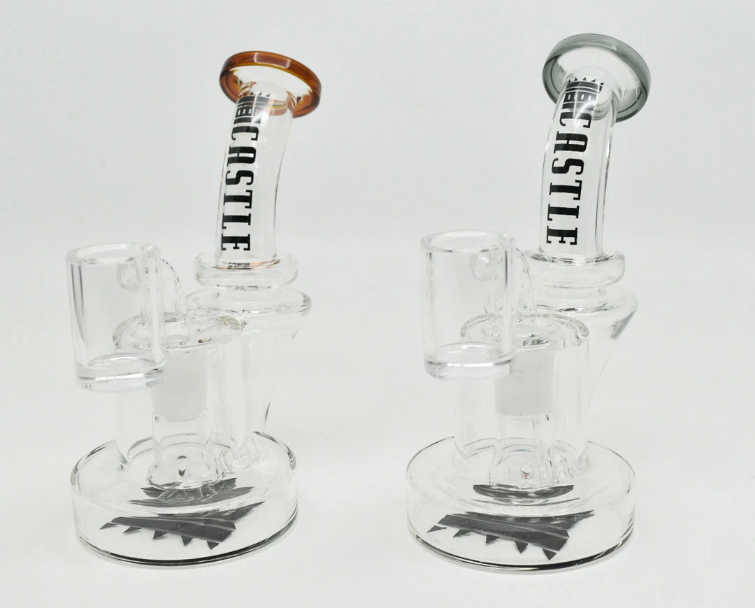 These 6″ Recycler Dab Rigs from Castle Glass come with Castle Glassworks signature thick bottom bangers and one of the most portable recyclers you can find, size-wise.Â