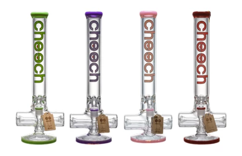 These Cheech Glass 16″ 7mm Inline Tube Bongs are really nice quality units. Featuring a 19mm flower bowl and an ice pinch with a nice tall neck, giving you lots of room for ice cubes!