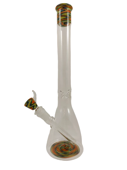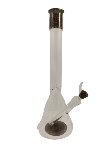Hand blown beaker bong, with wig wage accents on the base and neck