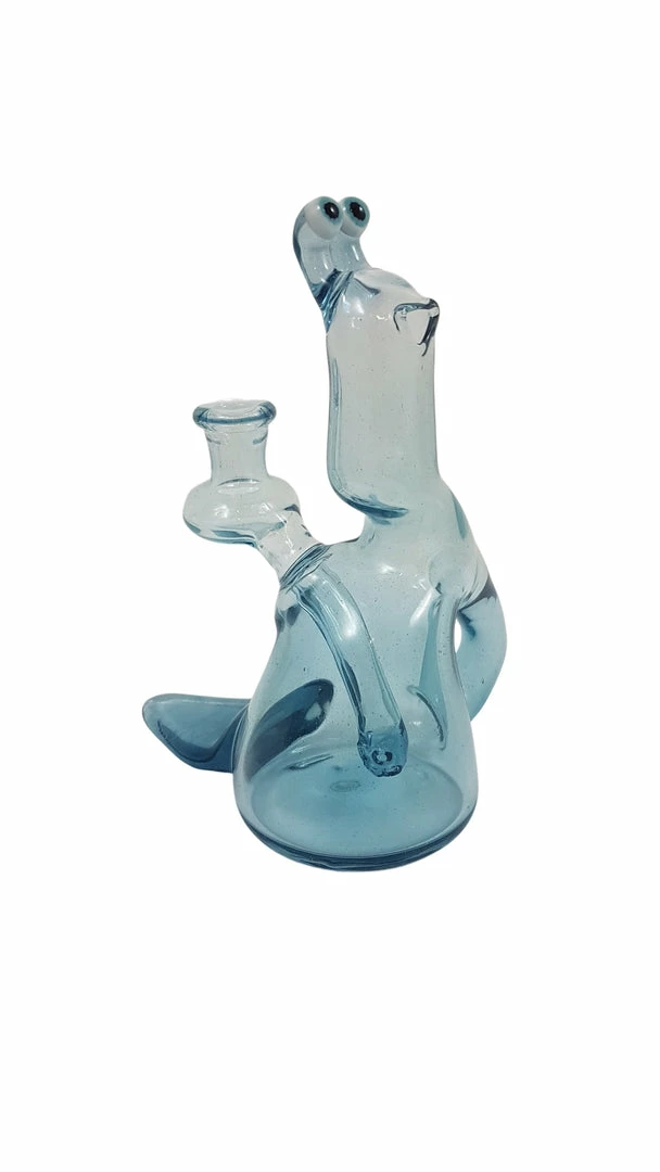 Embrace the slime! This beautiful Blue “Slugcycler” from Browski Glass hits smooth and looks to die for. Fits a 10mm Male 90° Banger.