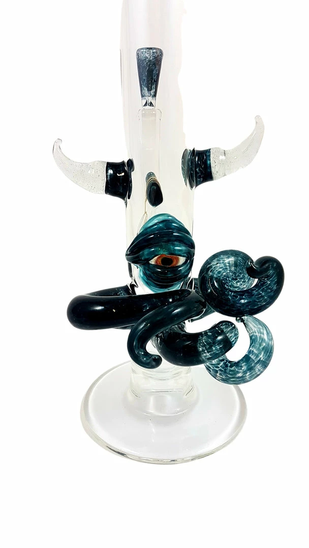 This Blue Squid Straight tube is a beautiful collectors piece from Shine Glassworks and comes with a custom 14mm bong bowl.Â