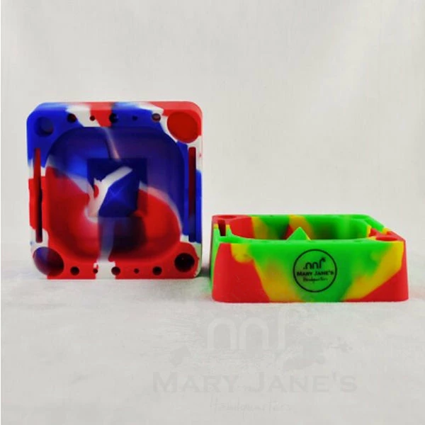 Nobody likes ashing out their bowl after their bong toke. The Pyramid Ashtray makes it easy! You can tap it anywhere on the ashtray and the silicone will absorb the shock and make cleaning a breeze. Has built in slits to hold you pack of paper, 14mm and 19mm bowl holders, dab pick holders, lighter holder. This thing has all the holders you need to keep your greasy accessories off your coffee table.