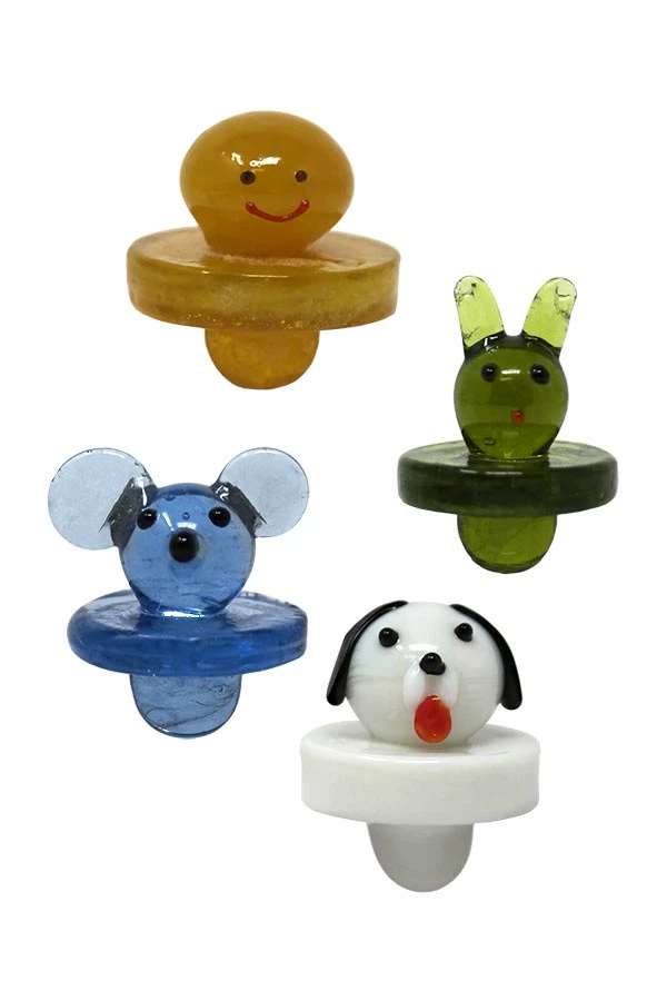 These adorable carb caps are hand made, therefore no two are exactly the same. They are small but the actual cap section is a universal fit for most bangers/rigs. They are easy to clean and store, taking up practically no space at all. Many styles and colors options to choose from.