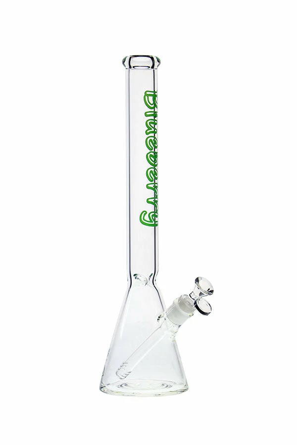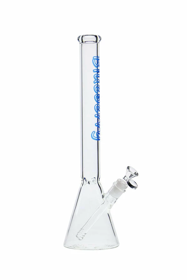 This beaker is tall yet slender in design, with an elongated neck tube that can hold all the ice you need for a cool hit. It features ice notches, slitted diffuser downstem and a herb bowl. The logo comes in different colour options.