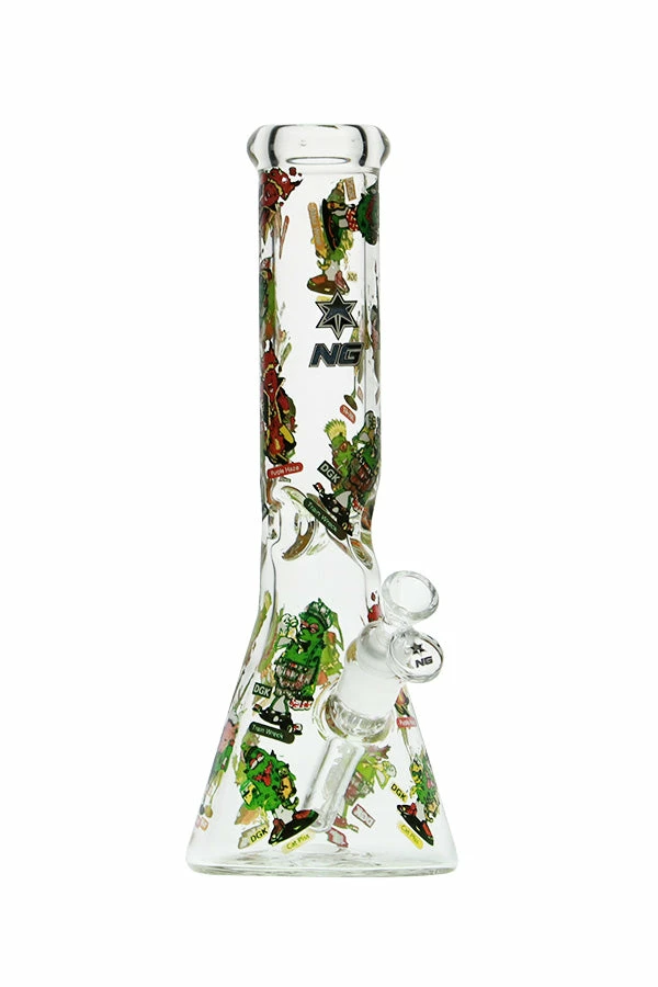 This 7mm Nice Glass DGK beaker comes equipped with ice notches, herb bowl, and slitted downstem. Our character bongs are available in different decal styles, you will sure to find one that calls out to you. They are colourful and full of whimsical fun.