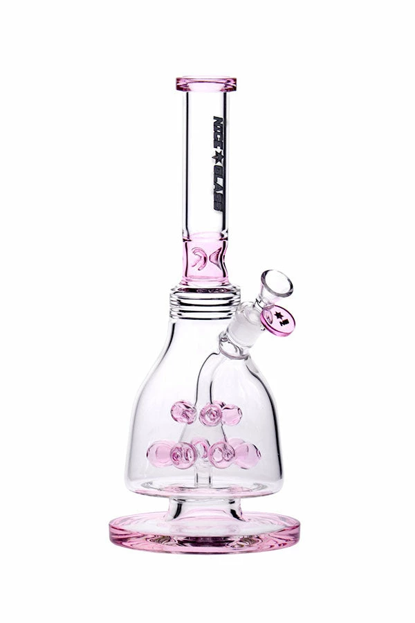 This flared base bong features a large chamber with a percolator encircled with twelve bauble aeration holes that evenly distributes the smoke for maximum cooling. It comes with a flower bowl and ice notches and available in a range of colour options.