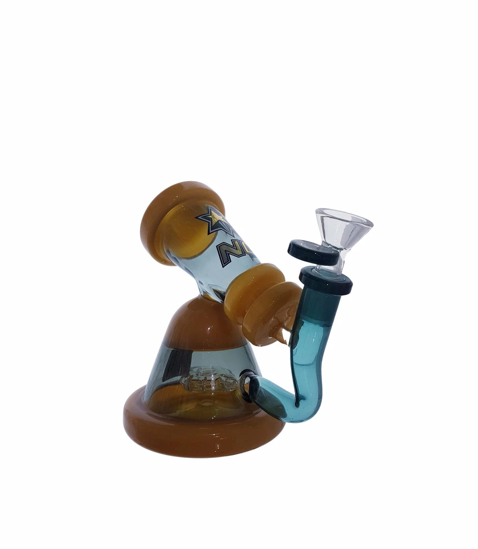 This miniature microscope style Dab Rig from Nice Glass has a showerhead perc and bent neck offering smooth and convenient dabbing.