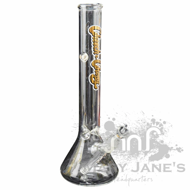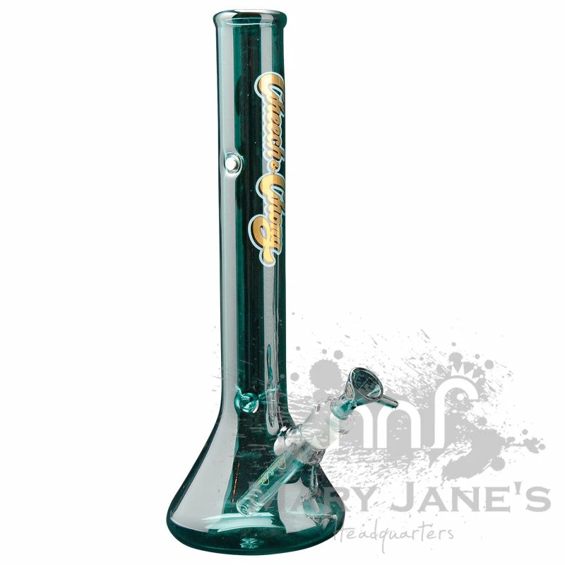 ANYWAYS, these 14″ tall beaker bongers from Cheech & Chong Glass feature complete glass-on-glass connections and even sport a built-in magnet to help you keep track of your lighter!