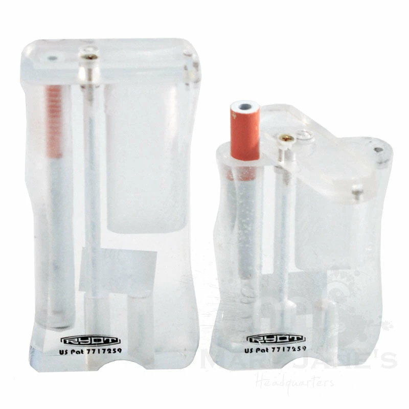 Not to be outdone by their wooden dugout cousins, RYOT also makes a near overwhelmingly huge line of acrylic-based dugout one hitters. Not to worry, they still come with a metal one-hitter inside. They also come with a magnetized cleaner device on the bottom that will get your one hitter out of any clogged situation. This crowd just seems to be a little more fancypants about it!