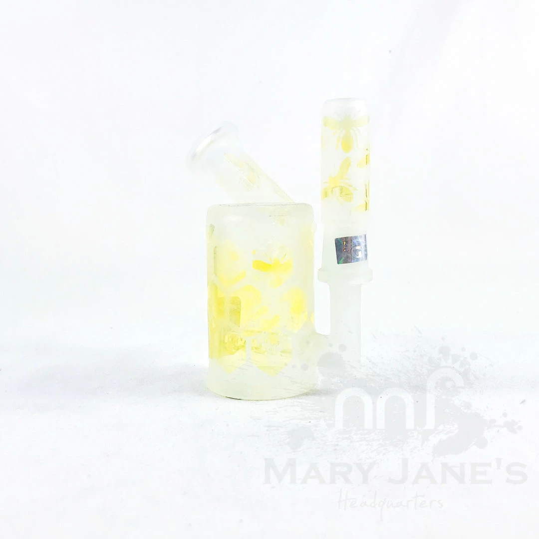 This micro sized, cute dab rig from GEAR sports an inline perc to help froth things up for you inside it’s water base. And it also features a flared sidecar mouthpiece – which is positioned ever so intentionally to help keep your face away from your heating area!