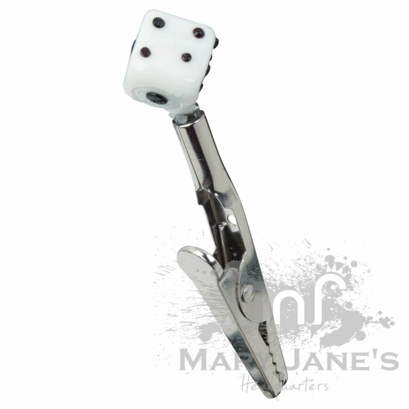 Fashioned to resemble the real deal, this glass-tipped roach clip features an off-set dice – complete with numbering dots and everything! NEAT.