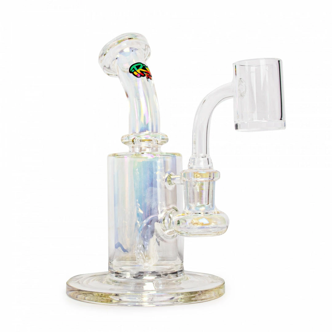 This mini rig is a lean, mean, smoking machine. The sparkling metallic finish is made with 100% borosilicate glass and accompanied by a 3-hole perc to ensure a clean-tasting smoking experience. The 5.5″ Metallic Finish Concentrate Rig is available in assorted colours.