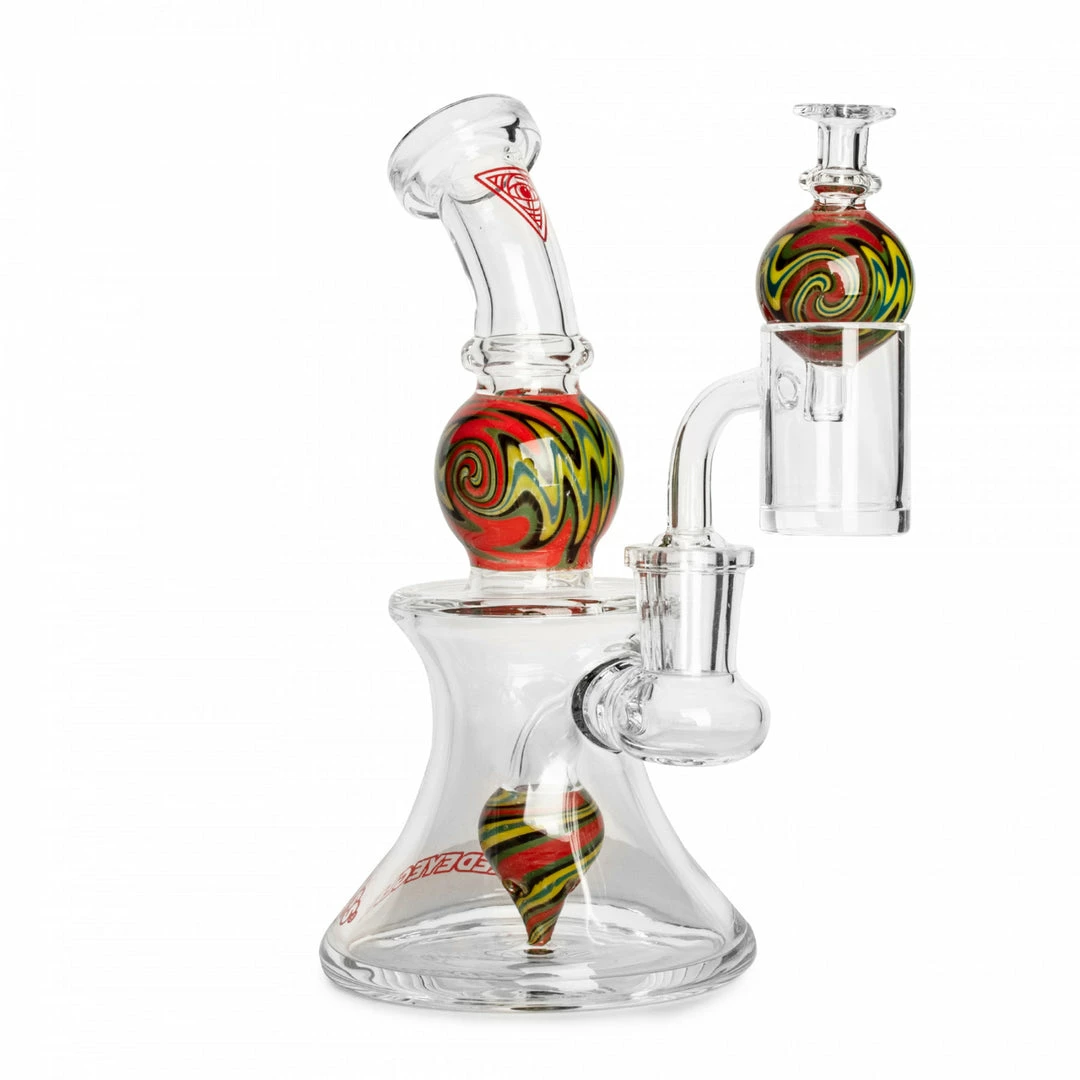 The colourful Montage Concentrate Rig from Red Eye Glass® comes in assorted colours and includes a matching carb cap to complete the set. Take advantage of the wide base design and ergonomically angled mouthpiece to enjoy smooth, delicious tasting vapour with every pull. It also comes with a thick bottom quartz banger which is ideal for low-temperature and cold start dabs.