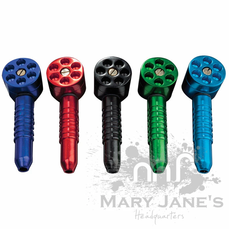 Whether you’re into smoking six bowls one after the other or if you’ve got a circle of bud’s waiting their turn, these anodized six shooter pipes will make your smoking life far more efficient!