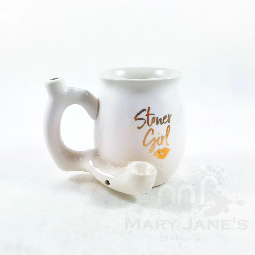 This fun and trendy novelty mug is made of ceramic and holds around 11oz of your favorite blend. Attached to the front of the mug is a pipe where you can pack your smoking herbs and light it. The smoke filters up the hollow handle to the mouthpiece on the top, allowing you to enjoy a smoke with your steaming coffee.