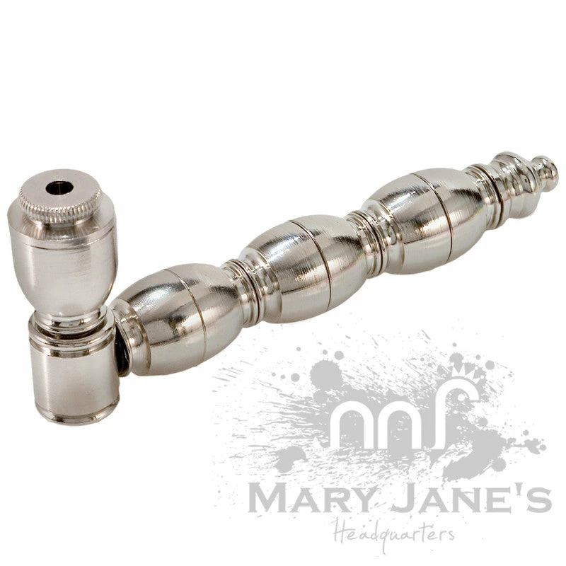 These chambered metal pipes have a unique function: you can unscrew the middle portions to reveal small areas for stashing your extra herb!