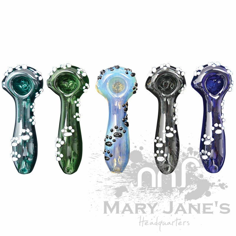 Rather than humping out and slapping a cheap decal over these spoon pipes, Red Eye Glass has cleverly dabbed on some really nice paw print-style beadwork all throughout each glass pipe!