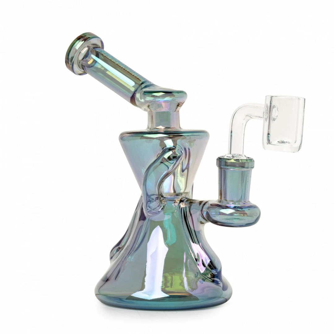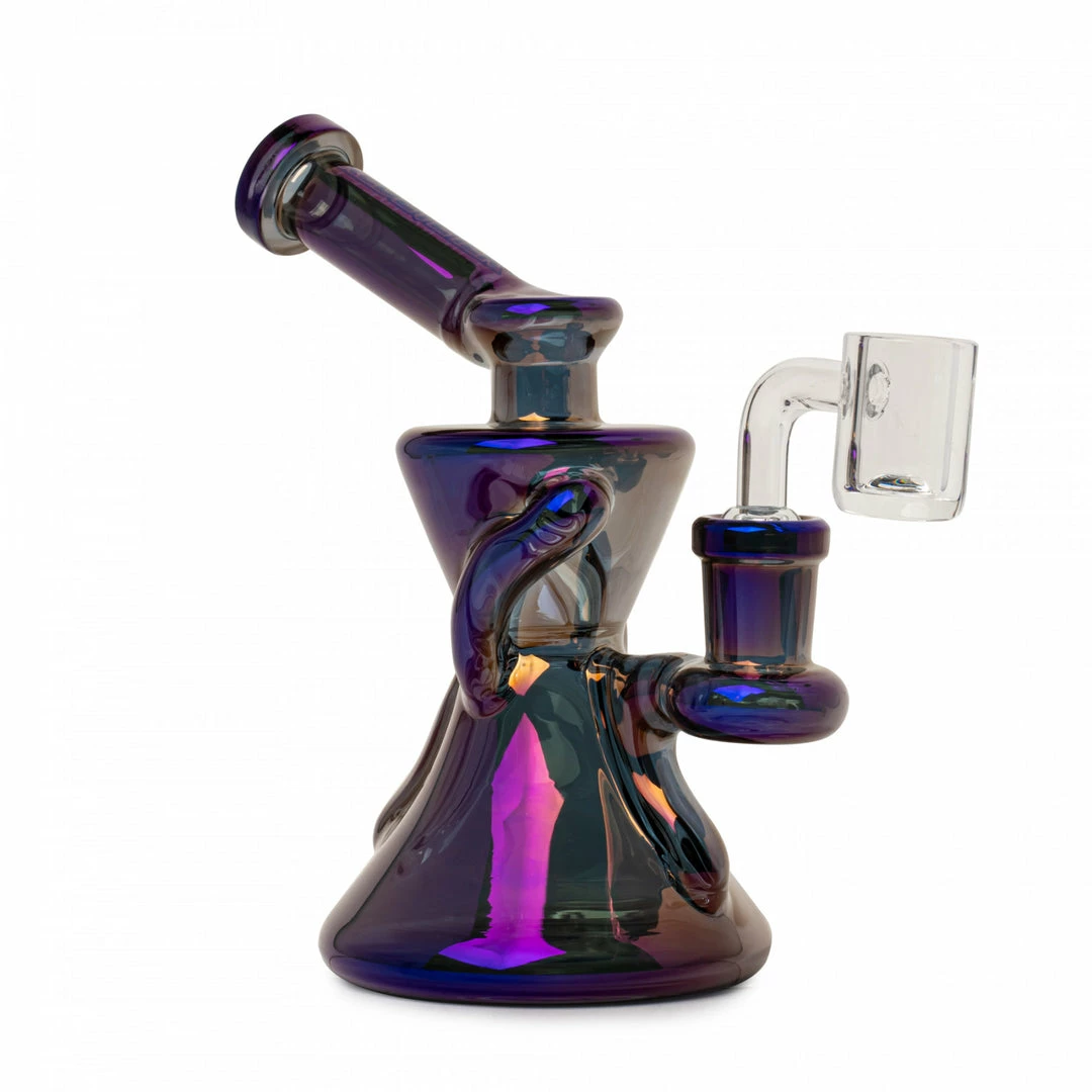 Small in height, but BIG in smoking power. The Gamma Recycler Dab Rig from Red Eye Tek® is made of 100% borosilicate glass with an angled mouthpiece design and twin recycler arms. Supercharge your next dab and try one today!