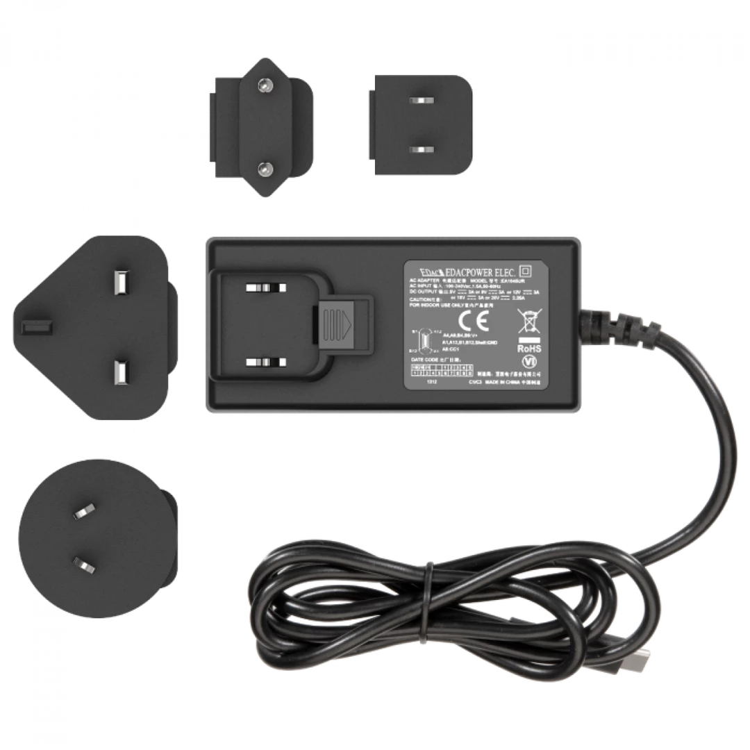 Quick charger with 4 plugs. The quick charger enables fast charging of the battery and maintains operation of the Mighty+ when the battery is empty. Due to the four interchangeable plugs, the Mighty+ can be used almost anywhere in the world.